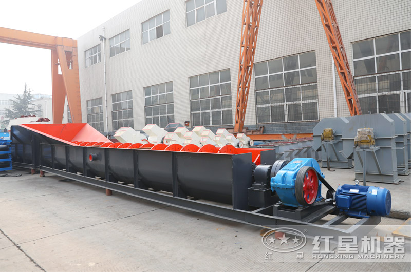 2、螺旋洗石機體型較長,采用臥式結構布置,處理量也更大,多用于大型砂廠,該設備使用螺旋推進石子而使石子與水和泥土分離,因而石子干凈但產量略低。