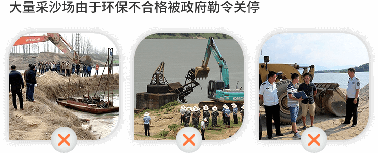目前國內(nèi)的機制砂普及力度并不高,再加上之前環(huán)保不達(dá)標(biāo)被關(guān)停的沙場數(shù)量眾多,所以短時間內(nèi)合格機制砂的供應(yīng)依然非常緊張。